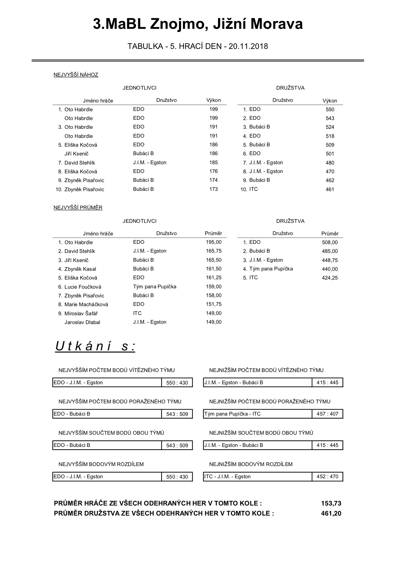 3. MABL podzim 2018 - 5. kolo
