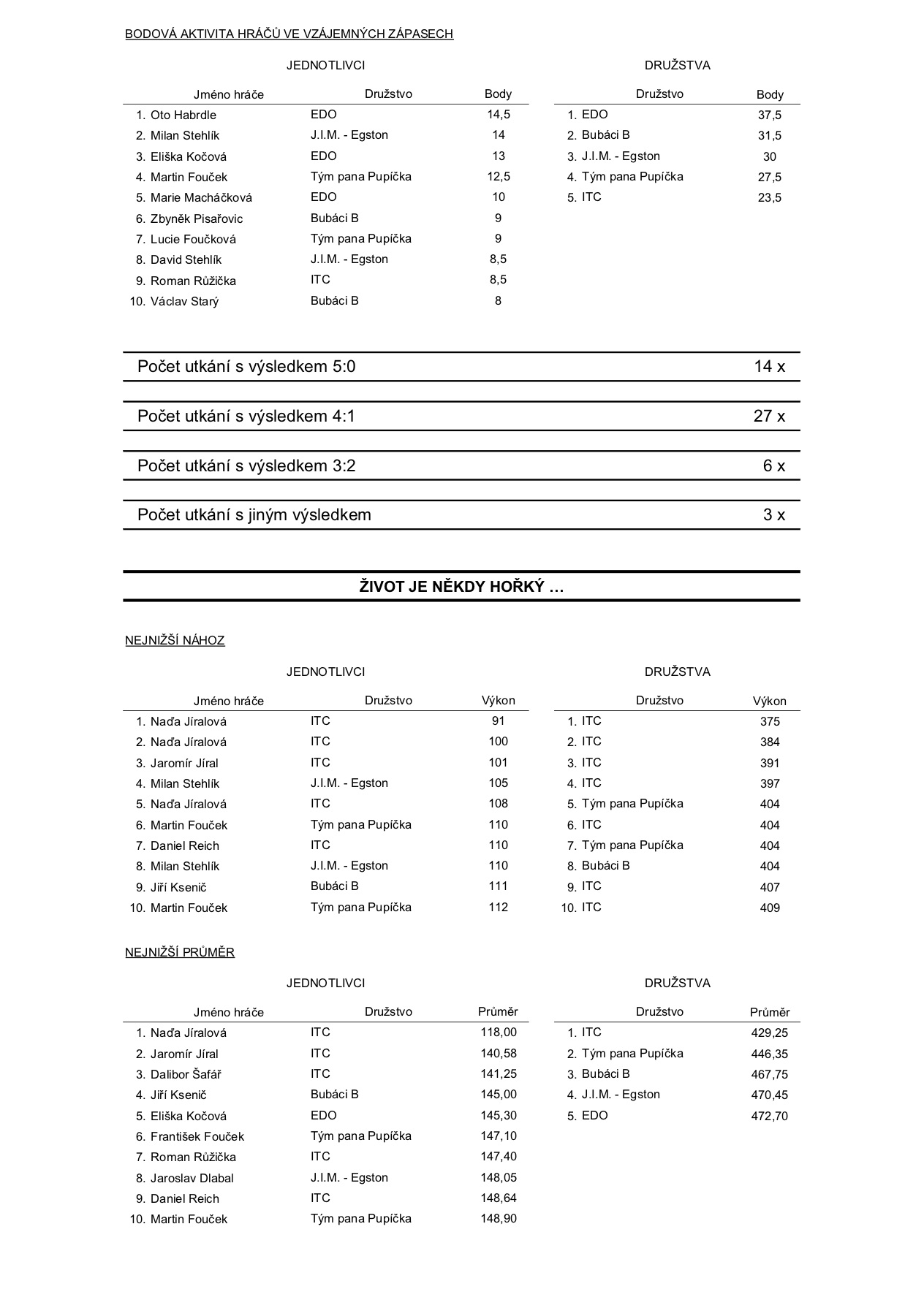 Celková statistika po pátém kole: